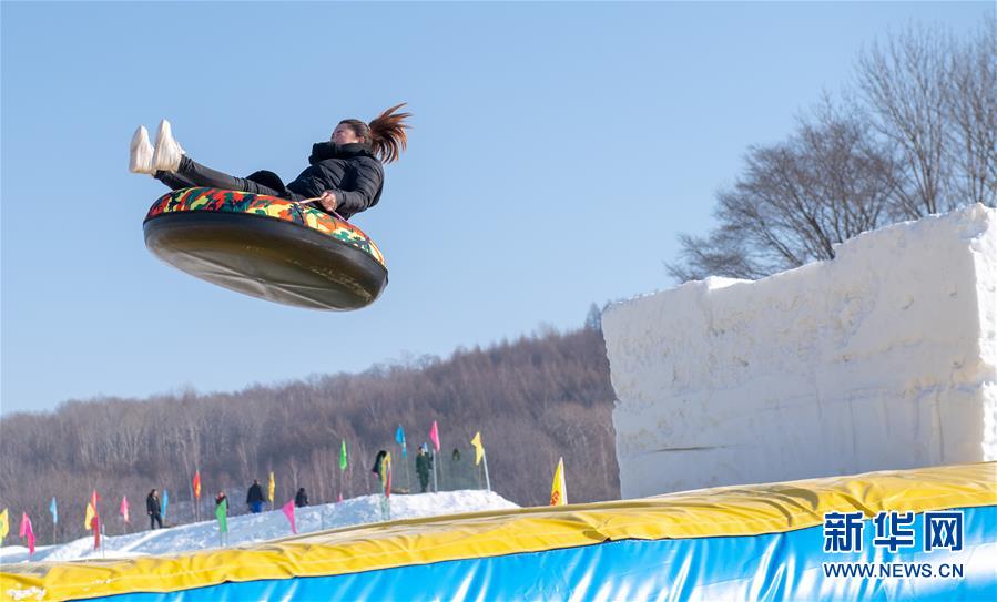 1月10日,在舒兰市二合屯,游客体验雪圈游戏项目。 新华社记者张楠摄