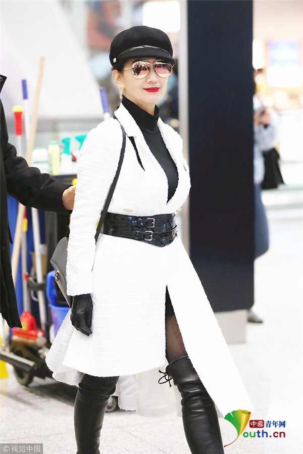 赵雅芝现身深圳宝安机场 帅气装扮秒变甜美女教官