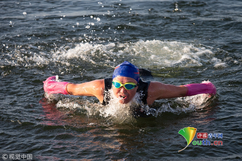 2019年1月10日至11日,长春,65岁的张敏石是一位冬泳爱好者,他经常一边冬泳一边吟诗或者唱戏。他自称曾患上脑梗脑萎缩,但他坚持锻炼,现在脑梗基本好了。坚持冬泳16年,他已背会600多首古诗词。因为这种独特的锻炼方式,张敏石早已成为南湖里的明星,今年他继续用这种锻炼方式,入冬后准时出现在南湖冬泳区。