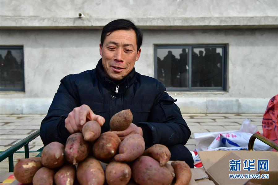 1月13日,村民在展销活动上售卖红薯。 新华社记者 冯大鹏 摄