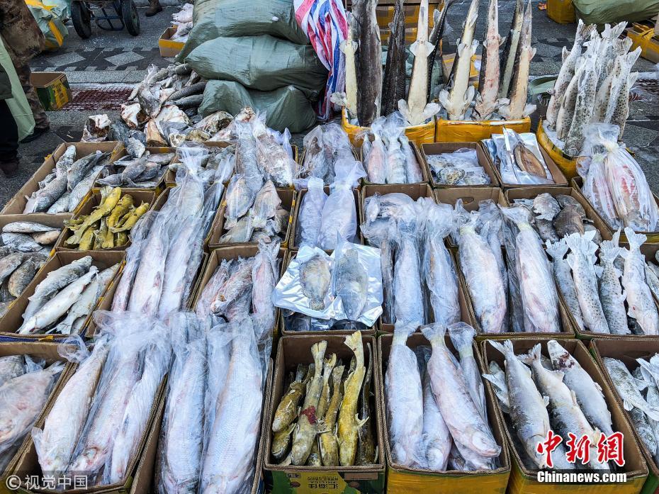 1月12日,黑龙江省佳木斯市抚远东极鱼市,抚远东极鱼市的冻鱼。棋簿紫 摄 图片来源:视觉中国