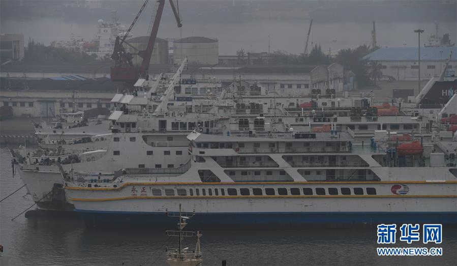 1月13日拍摄的停靠在海口秀英港的客滚船。