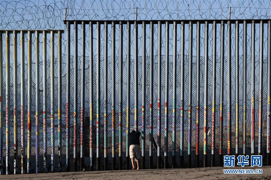 1月10日,在墨西哥边境城市蒂华纳,一名男子在美墨边境墙边停留。新华社记者 辛悦卫 摄