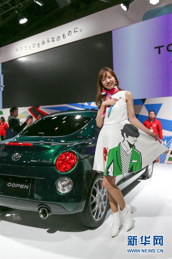 1月13日,在日本千叶东京汽车沙龙现场,模特展示参展车辆。 新华社记者 马曹冉 摄