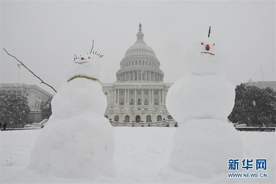 这是1月13日在美国首都华盛顿拍摄的雪中的国会山。 近日,美国首都华盛顿及其周边地区普降暴雪。降雪导致部分航班晚点或取消,道路交通事故增多。 新华社记者 刘杰 摄