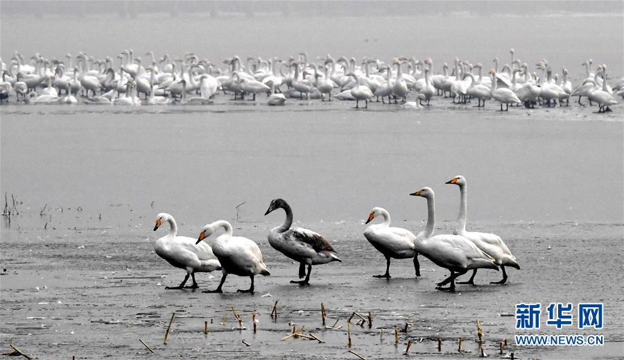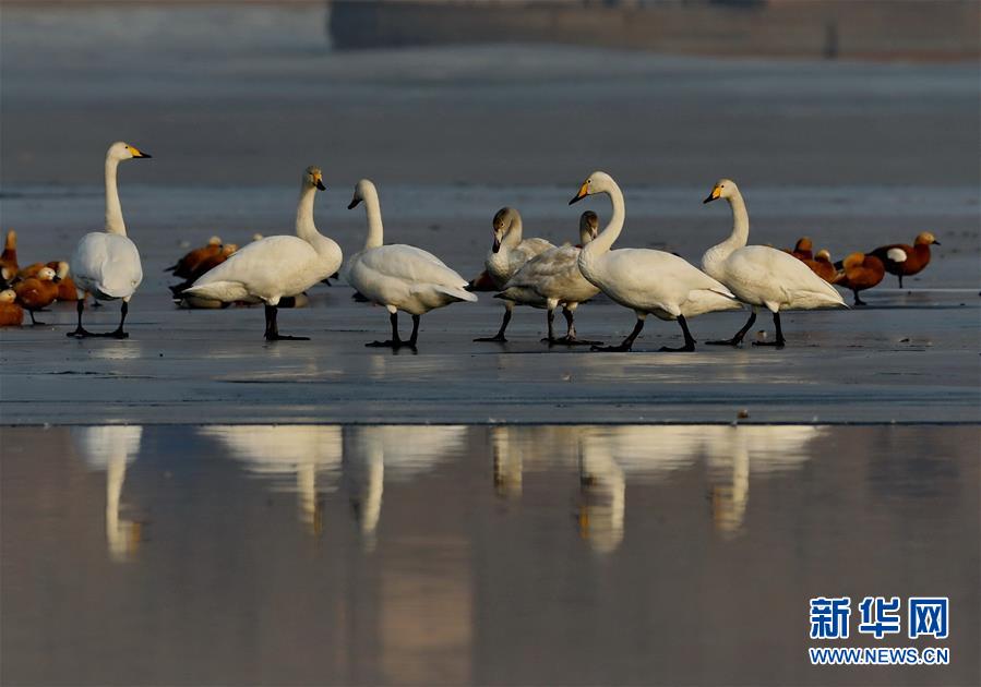 1月4日,白天鹅在三门峡黄河湿地栖息。 新华社记者朱祥摄