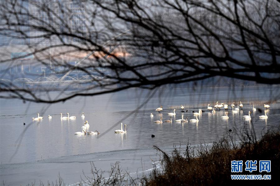 1月3日,白天鹅在三门峡黄河湿地栖息。 新华社记者王丁摄