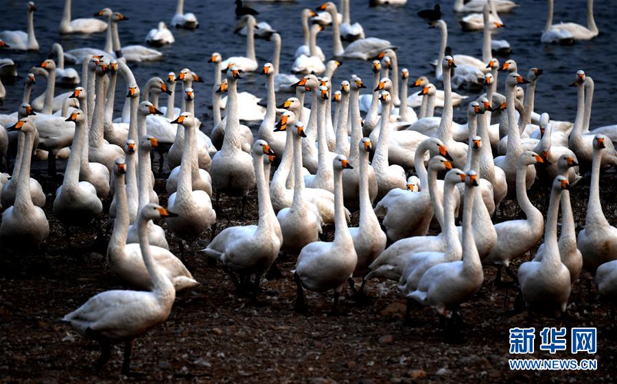 1月13日,天鹅等水鸟在张家口市宣化区洋河水库休憩。 近年来,河北省张家口市宣化区立足京津冀生态涵养区的功能定位,不断加大环境治理和生态功能修复力度,使洋河水库及周边湿地成为天鹅、大雁、野鸭、灰鹤等多种鸟类南北迁徙中的栖息地。 新华社记者杨世尧摄