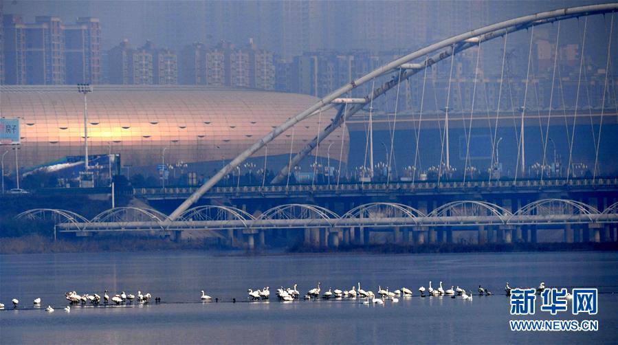 1月3日,白天鹅在三门峡黄河湿地栖息。 新华社记者朱祥摄