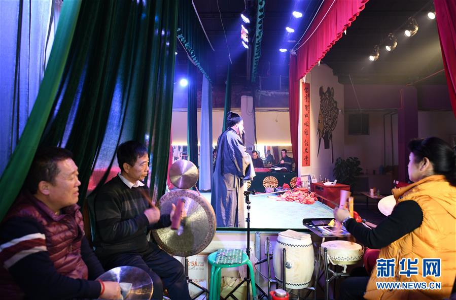 1月14日,在颐融堂戏曲体验馆里,演员在表演秦腔折子戏。新华社记者 范培珅 摄
