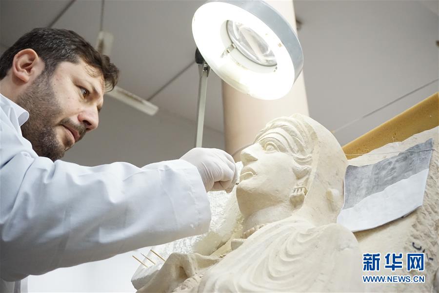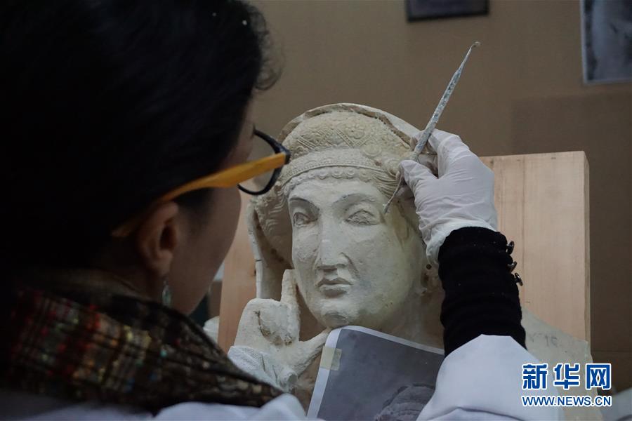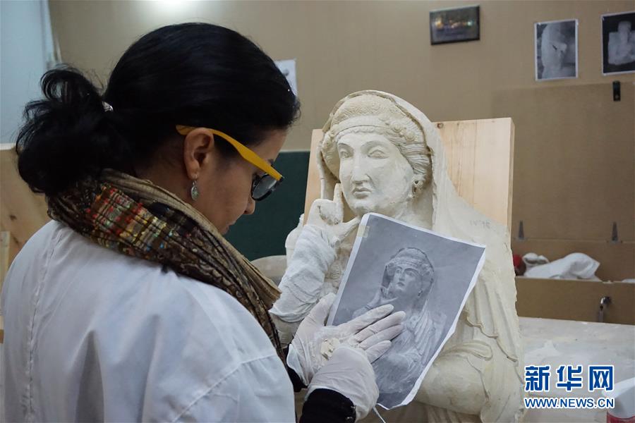 12月5日,在叙利亚首都大马士革,文物修复师赫芭·朱马在国家博物馆内修复来自巴尔米拉的受损雕像。 在叙利亚国家博物馆展厅一角,文物修复师赫芭·朱马正给一座受损的雕像“整容”。“我对这座雕像有特殊的感情,‘她’就像我的家人一样。”朱马说,包括这座雕像在内,馆内大部分受损文物都来自她的家乡巴尔米拉。这座叙利亚古城有2000多年的历史,是一座古罗马风格的历史遗址,1980年被联合国教科文组织列入世界文化遗产名录。过去数年间,极端组织“伊斯兰国”先后两次攻占巴尔米拉,不仅滥杀无辜,还大肆破坏遗迹文物。2017年3月,叙利亚政府军重夺对巴尔米拉的控制权,劫后余生的文物被分批运到首都大马士革保存。数月前,国家博物馆组建文物修复小组,朱马也从巴尔米拉被调来参与修复工作。受人力、材料和技术所限,修复工程预计需要5至8年才能完成。朱马说,很多雕塑碎成多块,拼接十分耗时。尽管挑战重重,但朱马对修复过程丝毫不马虎。“赶紧好起来吧,等修好了,我带你们回家。”她总是如此喃喃而语。 新华社记者汪健摄