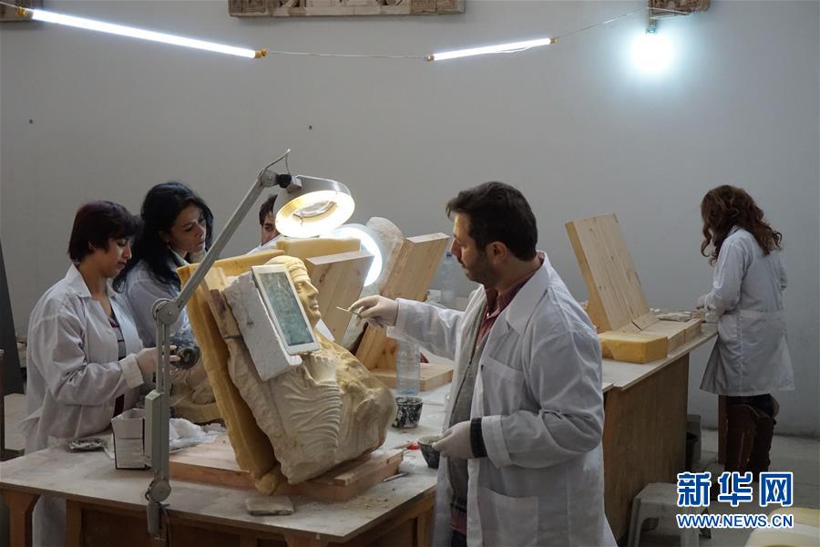 12月5日,在叙利亚首都大马士革,文物修复小组成员在国家博物馆内修复来自巴尔米拉的受损文物。 在叙利亚国家博物馆展厅一角,文物修复师赫芭·朱马正给一座受损的雕像“整容”。“我对这座雕像有特殊的感情,‘她’就像我的家人一样。”朱马说,包括这座雕像在内,馆内大部分受损文物都来自她的家乡巴尔米拉。这座叙利亚古城有2000多年的历史,是一座古罗马风格的历史遗址,1980年被联合国教科文组织列入世界文化遗产名录。过去数年间,极端组织“伊斯兰国”先后两次攻占巴尔米拉,不仅滥杀无辜,还大肆破坏遗迹文物。2017年3月,叙利亚政府军重夺对巴尔米拉的控制权,劫后余生的文物被分批运到首都大马士革保存。数月前,国家博物馆组建文物修复小组,朱马也从巴尔米拉被调来参与修复工作。受人力、材料和技术所限,修复工程预计需要5至8年才能完成。朱马说,很多雕塑碎成多块,拼接十分耗时。尽管挑战重重,但朱马对修复过程丝毫不马虎。“赶紧好起来吧,等修好了,我带你们回家。”她总是如此喃喃而语。 新华社记者汪健摄
