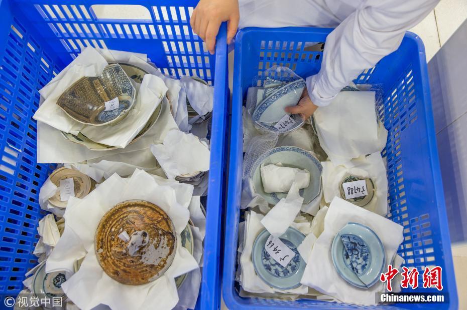 广东省博物馆文物保护科技中心出水文物保护实验室里,修复后的出水瓷器。谭庆驹 摄 图片来源:视觉中国