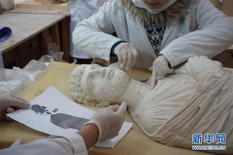 12月5日,在叙利亚首都大马士革,文物修复小组成员在国家博物馆内修复来自巴尔米拉的受损雕像。 在叙利亚国家博物馆展厅一角,文物修复师赫芭·朱马正给一座受损的雕像“整容”。“我对这座雕像有特殊的感情,‘她’就像我的家人一样。”朱马说,包括这座雕像在内,馆内大部分受损文物都来自她的家乡巴尔米拉。这座叙利亚古城有2000多年的历史,是一座古罗马风格的历史遗址,1980年被联合国教科文组织列入世界文化遗产名录。过去数年间,极端组织“伊斯兰国”先后两次攻占巴尔米拉,不仅滥杀无辜,还大肆破坏遗迹文物。2017年3月,叙利亚政府军重夺对巴尔米拉的控制权,劫后余生的文物被分批运到首都大马士革保存。数月前,国家博物馆组建文物修复小组,朱马也从巴尔米拉被调来参与修复工作。受人力、材料和技术所限,修复工程预计需要5至8年才能完成。朱马说,很多雕塑碎成多块,拼接十分耗时。尽管挑战重重,但朱马对修复过程丝毫不马虎。“赶紧好起来吧,等修好了,我带你们回家。”她总是如此喃喃而语。 新华社记者汪健摄