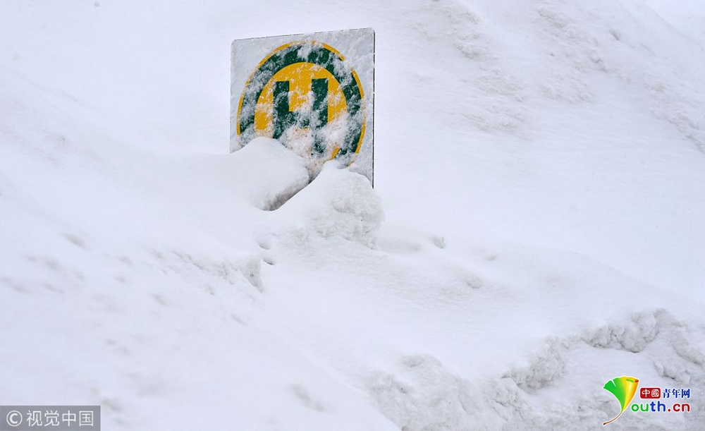 奥地利暴风雪持续 公交车站被积雪掩埋