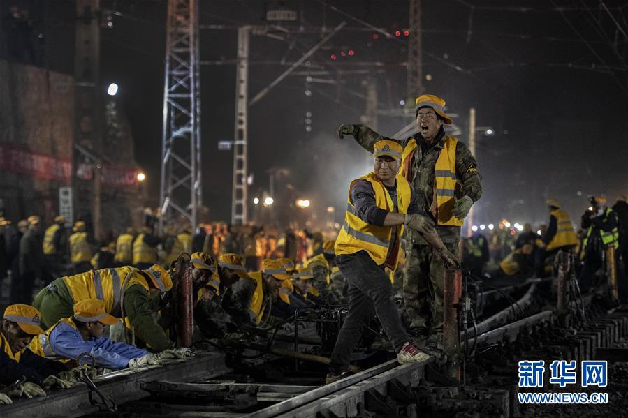 当日,经过中铁十一局等参建各方1000余人6个多小时通宵奋战,西安火车站改扩建工程首次联锁设备换装施工圆满完成,进入主体工程实施阶段,为即将开始的春运旅客运输提供坚实的基础保障。 西安火车站改扩建工程于2015年正式启动,采取“边行车、边建设”的施工方案,属全国省会城市改造难度相对较大的车站,也因此被形象地称为“在铁路枢纽心脏上做手术”。 新华社记者陶明摄