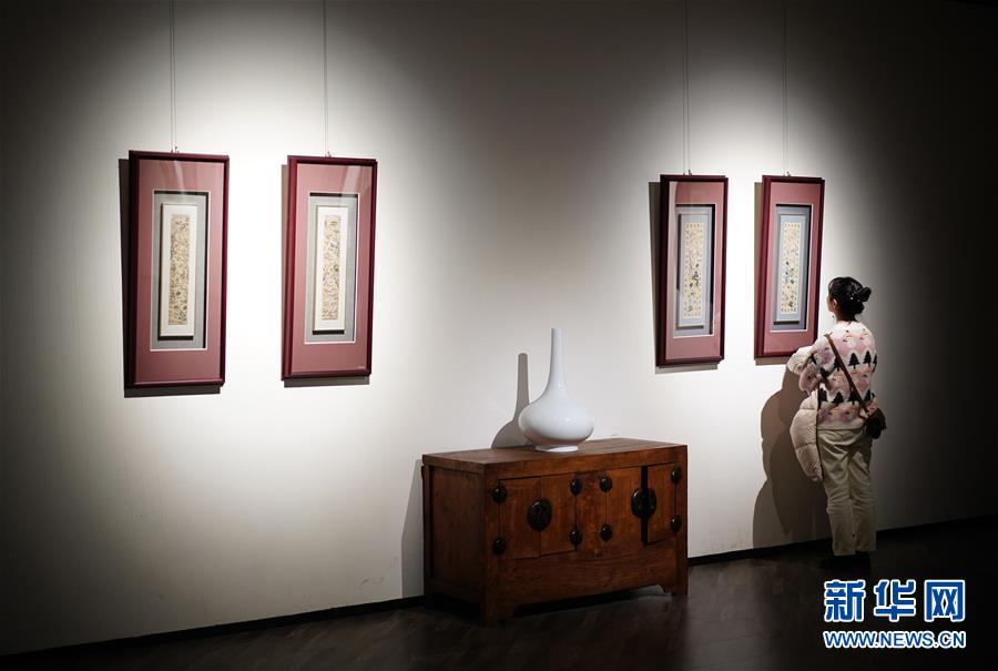 1月14日,一名读者在西安市未央区一家书城的艺术品售卖区参观。