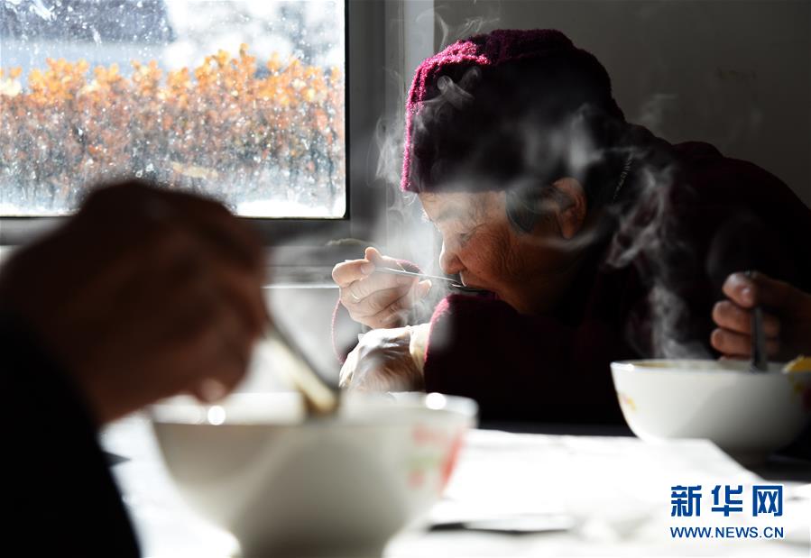 1月15日,村里的老人在“一元餐厅”内吃午饭。新华社记者王凯摄