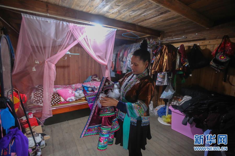贫困户住进“复原”的房子,保持了熟悉的生活生产习惯,生活质量大幅提高,并在参与景区演出、田园管理等工作中获得稳定收入。梦呜苗寨计划一共搬入100户贫困户,目前已完成12户42名建档立卡贫困人员的搬迁工作。 新华社记者 陈君清 摄