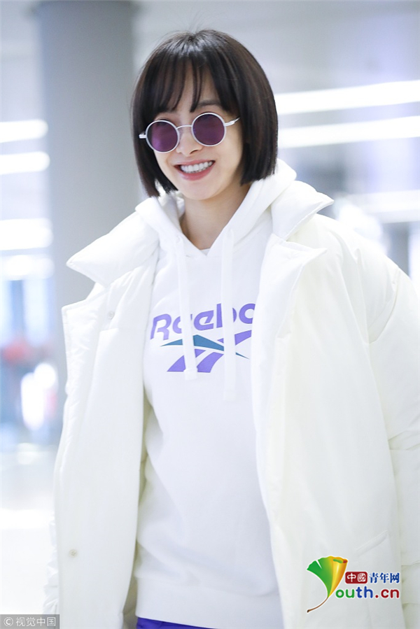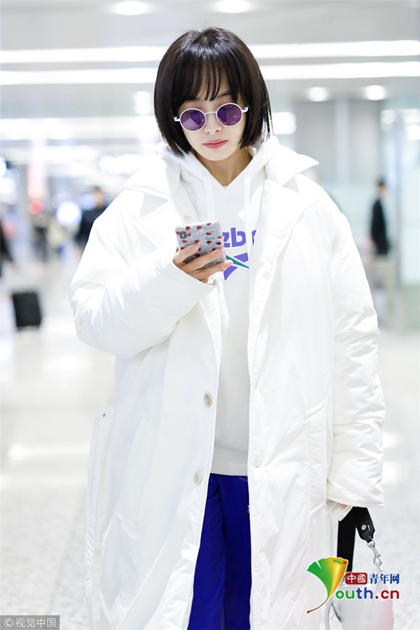 1月15日,上海,宋茜现身机场。她身穿白色羽绒服搭配紫色运动裤造型清爽有型,梳着齐耳短发秒变妹妹头,可爱吸睛。抬腿扯裤腿动作呆萌,难道是秋裤没穿好,要扯一下,这动作也是非常接地气了。