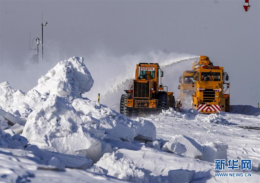 1月15日,新疆塔城公路管理局额敏分局玛依塔斯应急保障基地利用抛雪机清扫道路积雪。 玛依塔斯风区位于新疆西北部额敏县境内。这里东西风交替频繁,一年大风天数超过150天,是世界上罕见的暴风雪灾害地段。驻守在这里的新疆塔城公路管理局额敏分局玛依塔斯应急保障基地,近年来连续装备抛雪机等冰雪抢险救灾装备,有力地保障了这条道路的交通安全。 新华社记者赵戈摄