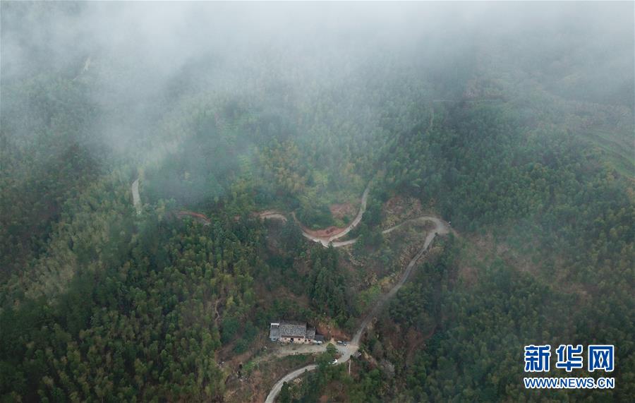 位于龙泉市牛头岭村群山之中的“七分醉”工作室(1月15日无人机拍摄)。 新华社记者翁忻旸摄