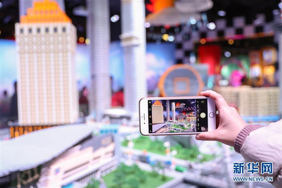 1月15日,观众拍摄由“乐高”积木搭建而成的沈阳市微缩景观。