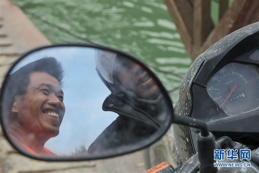 1月22日,赖福昌(左)与乘坐渡轮回家的当地村民交谈。 新华社记者 欧东衢 摄