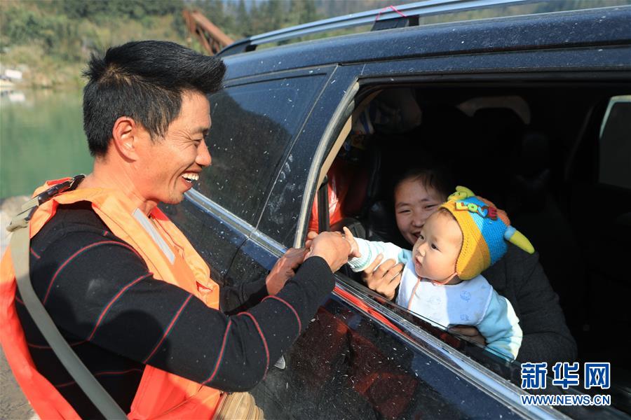 1月22日,赖福昌(左)与乘坐渡轮的小孩交流。 新华社记者 欧东衢 摄