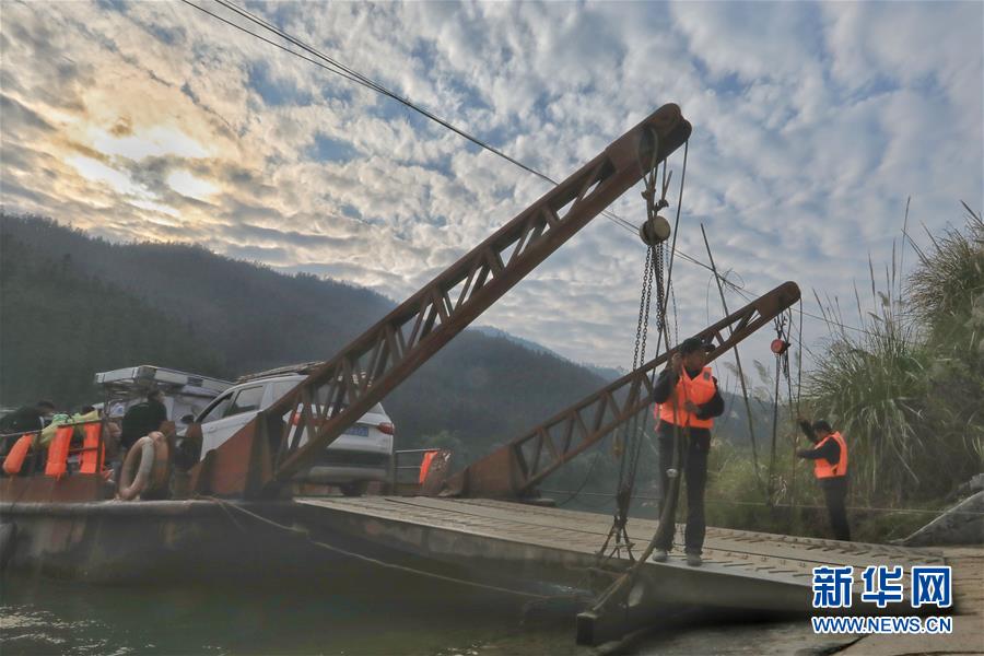 1月22日,何银祥(前)和赖福昌在调整船板高度。 新华社记者 欧东衢 摄