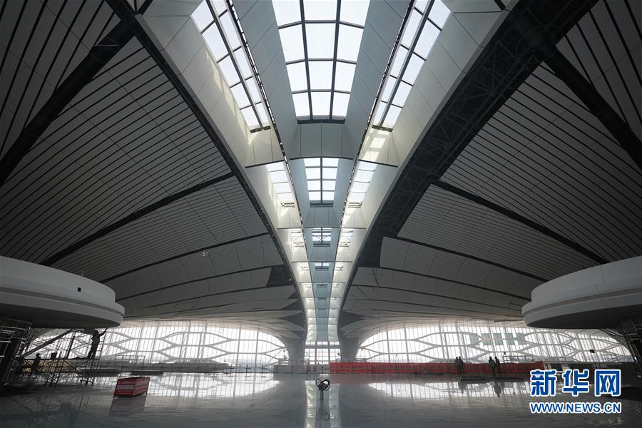 工人在北京大兴国际机场主航站楼内进行装修施工(2018年12月29日摄)。新华社记者 鞠焕宗 摄