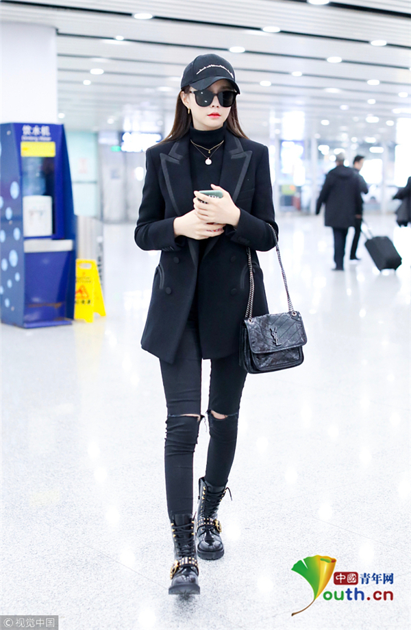 沈梦辰全黑look又飒又美 黑超遮面甜妹变酷girl