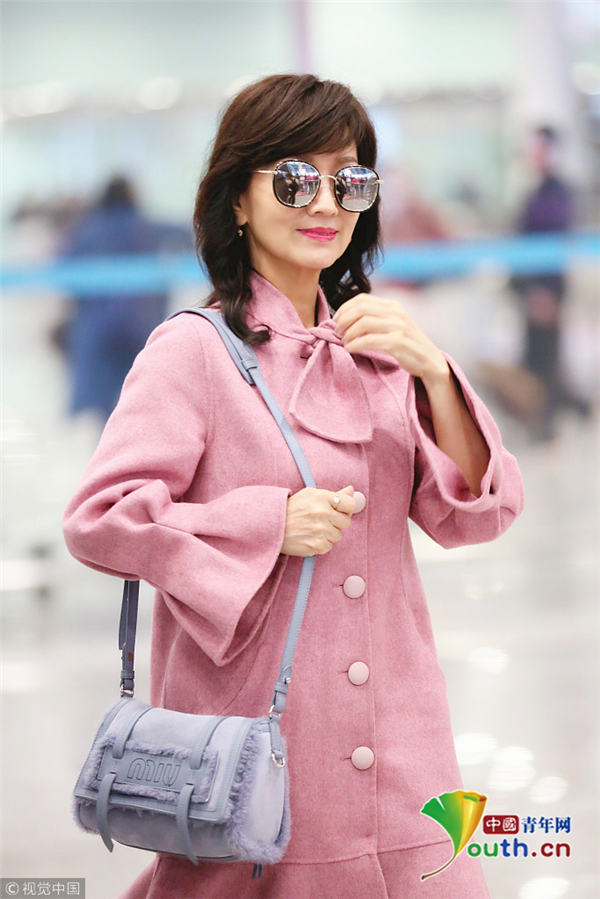 1月22日,广东深圳,近日,赵雅芝与丈夫黄锦燊现身机场,黑超遮面的她身着粉色昵子鱼尾大衣,气质超群,一路获粉丝跟随,共先生黄锦燊牵手同行。