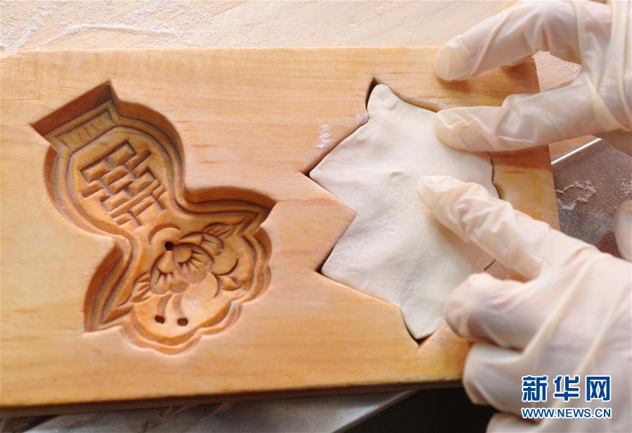 1月31日,河北黄骅市一家面花作坊的工人用面花模子制作面花。 河北黄骅市有着过年蒸面花的习俗。春节前夕,当地面花制作工厂加班加点制作面花,供应春节市场。 新华社记者牟宇摄