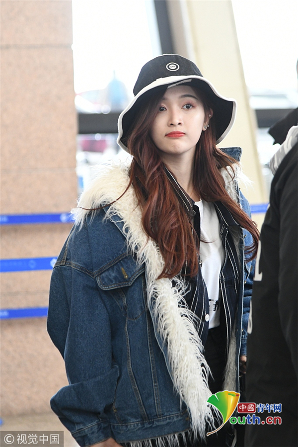 2月2日,上海,吴宣仪头戴帽子身穿一袭牛仔服现身机场 。她自提大包回家过年 ,获粉丝拜年祝福 ,吐舌狂卖萌。