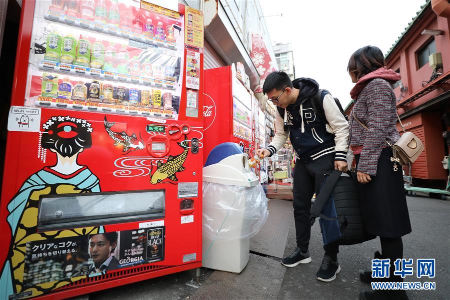 2月8日,在日本东京,中国游客将空塑料瓶扔到垃圾桶内。 虽然中国人过春节的传统是返乡回家,但越来越多的国人选择在春节期间走出国门,利用春节假期外出旅游。 新华社记者 杜潇逸 摄