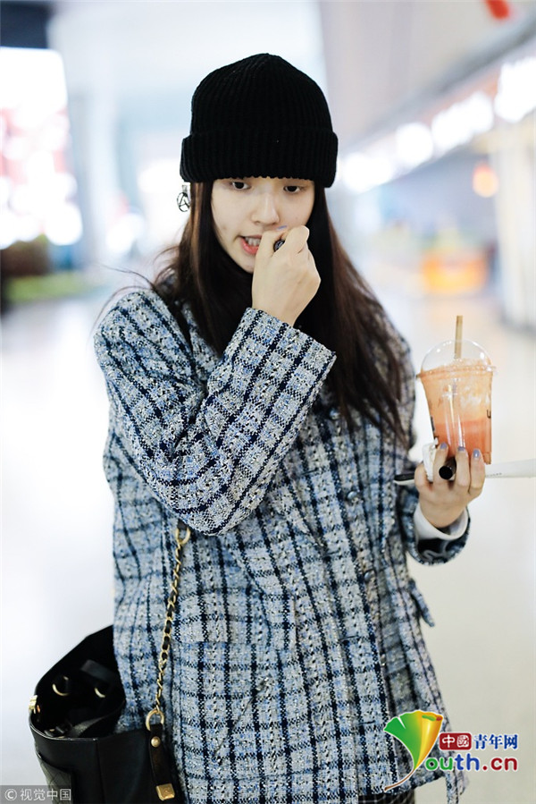 林允素颜嘟嘴卖萌大方任拍 捧果汁回眸挥手告别