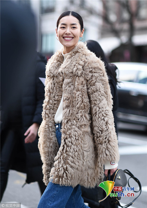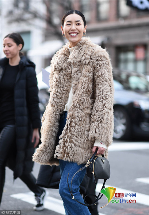 当地时间2019年2月10日,美国纽约,2019秋冬纽约时装周:刘雯现身街头。她身穿毛绒外套帅气养眼,走在街头回眸一笑气质迷人。