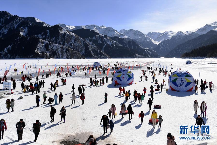 2月17日,游客在新疆天池景区游玩。 2018年入冬至2019年2月17日,新疆天池景区接待游客23万人次,实现旅游经济收入2.25亿元。新疆天池景区着力发展冬季旅游,为游客提供优质冰雪旅游体验,逐渐将天池“冷资源”变成“热经济”。 新华社记者沙达提摄