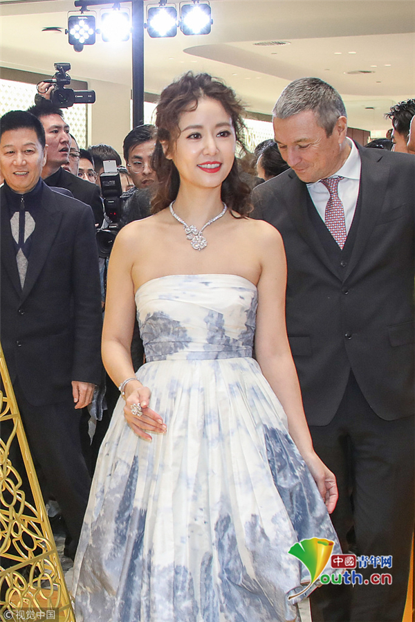 林心如穿抹胸裙秀香肩 浅笑盈盈女人味十足