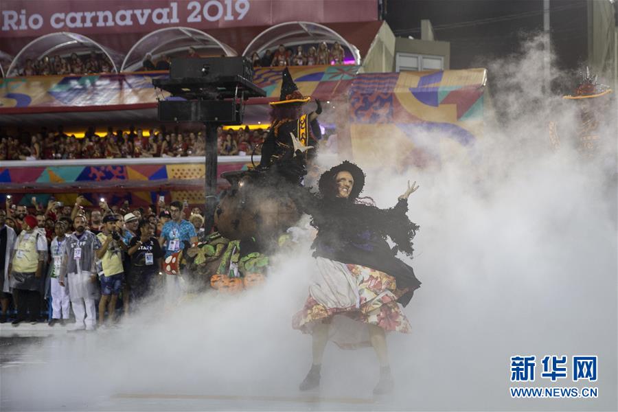 3月3日,在巴西里约热内卢,特级组桑巴舞校演员参加狂欢节游行。 3月3日晚,2019年里约热内卢狂欢节特级组桑巴舞校在桑巴大道开始花车巡游表演。 新华社记者李明摄