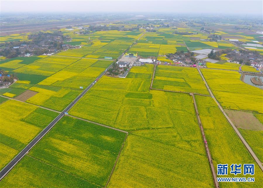 这是无人机航拍的广汉市油菜花田(3月6日摄)。 新华社记者刘坤摄