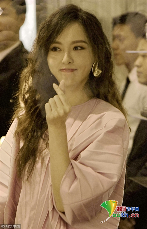 唐嫣隔玻璃比心与粉丝互动 路人视角也美到窒息
