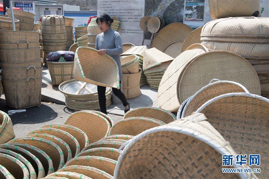 3月12日,人们在福建武夷山“柴头会”上采购传统竹制品。