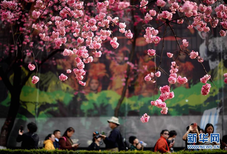 游人在昆明圆通山公园观赏盛开的樱花(3月16日摄)。近日,云南省昆明市迎来樱花盛开的时节。昆明圆通山公园的数千株樱花灿烂绽放,吸引了市民和游客前来观花赏景。新华社记者秦晴摄