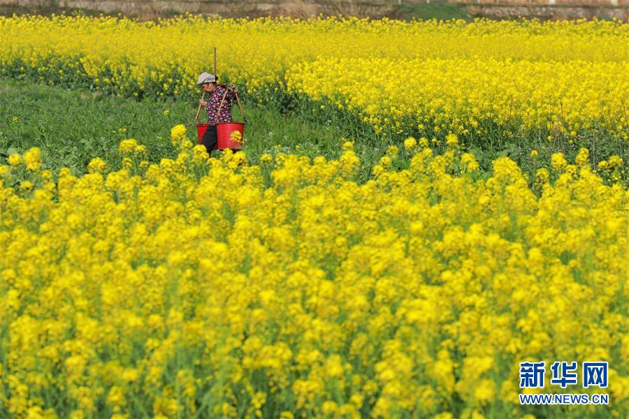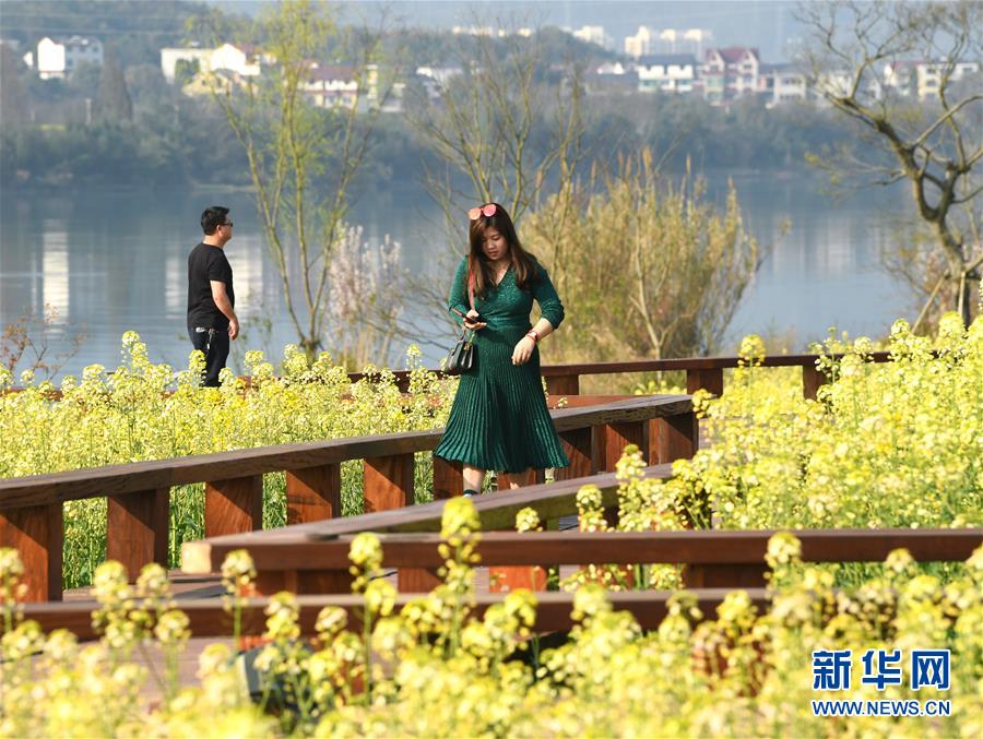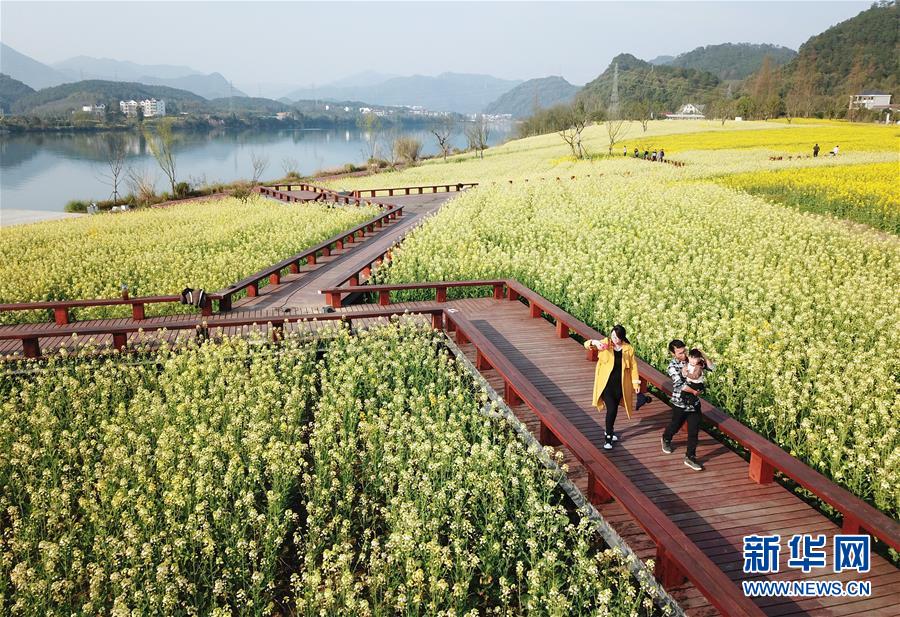 3月19日,游人在下涯镇油菜花海中游玩。近日,浙江省建德市下涯镇油菜花盛开,吸引不少游客前来踏春。 新华社记者翁忻旸摄