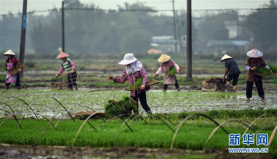 3月20日,广西钦州市钦南区康熙岭镇那沙村村民在田间抛秧。春分将至,各地农民抢抓农时开展农事活动,田间地头到处是一派繁忙景象。 新华社记者张爱林摄