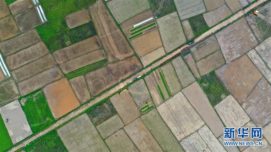这是钦州市钦南区康熙岭镇板坪村的稻田(3月20日无人机拍摄)。春分将至,各地农民抢抓农时开展农事活动,田间地头到处是一派繁忙景象。 新华社记者张爱林摄