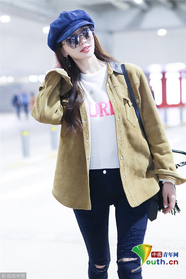 林志玲毛衣配破洞仔裤秀美腿 对镜甜笑温柔挥手