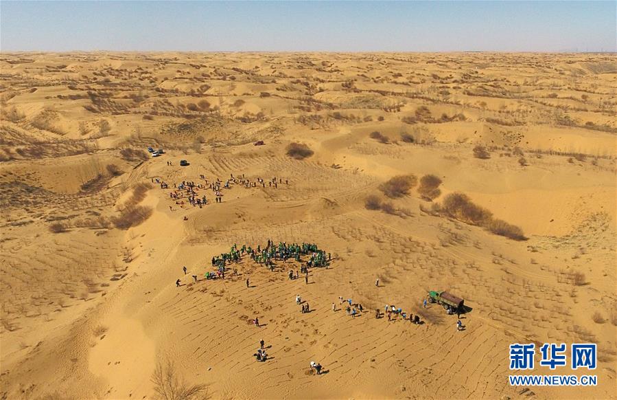 3月31日,中韩青年在内蒙古达拉特旗库布其沙漠中植树(无人机拍摄)。 当日,200余名中韩两国青年志愿者来到内蒙古自治区达拉特旗库布其沙漠种树。2006年起,中国国际青年交流中心与韩国韩中文化青少年协会组织两国青年志愿者在库布其沙漠植树,参与防沙固沙项目。截至目前已植树850多万株,造林3万多亩。 新华社记者 刘磊 摄